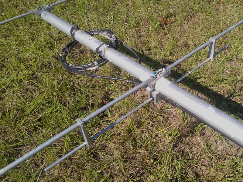 Issues with segmented antenna elements During the 2024 January VHF contest, the VSWR of my tower-mounted 6M5X went haywire while running high-power in a meteor scatter sked with K5QE. This destroyed the expensive LDMOS power transistor in the M2 solid-state kW amplifier (eventually repaired by John at Island Amplifier). After a few hours of troubleshooting, the source of the high SWR was isolated to the antenna and/or the brand-new flexible coax loop at the top of the tower. With the antenna back on the ground, no obvious issue was found. The SWR as measured by the nano-VNA was erratic leading me to suspect something was amiss with the UHF connectors. Over the course of several iterations and many weeks, I replaced the rotor loop coax, T-match, and balun. The response looked decent at ground level, but when mounted up on the tower, the VNA sweep again revealed very intermittent SWR, jumping up into the range of 3:1--4:1. The odd behavior was independently confirmed with an antenna analyzer. I could "cure" the poor SWR by connecting to the transceiver and applying a few Watts of 50 MHz RF power for a few seconds. The transceiver was instantly happy and even stranger -- re-connecting the VNA now showed a decent sweep. This good match would persist for perhaps 10 minutes to several hours, but eventually the SWR would go high on the VNA. In addition, rain would drop the SWR as measured by the VNA to an acceptable level in real-time. When the water evaporated, however, a poor SWR returned. As long as I was pushing transceiver power into the antenna, there was no appreciable reflected power. But I couldn't risk using the amplifier without having a reliable load on it. I brought the antenna down again and carefully sprayed water on the individual elements while watching the VNA. When I got to the reflector, the SWR dramatically improved. This isolated the problem to the reflector element clamp. Taking it apart revealed what appeared to be significant oxidation or burning in the channels. The left photo below shows one side partially cleaned and the other with a blackened surface as I found it. This thin dielectric film was causing intermittent conductivity across the length of the reflector element. Note that the 1-inch 8-32 SS screws don't provide a reliable electrical path into the clamp as they are secured by nylon locknuts. Not sure why this corrosion developed. I did not use any anti-oxidation compound when assembling it, at least not here in Florida. I don't recall using any paste when I first built it in 2007 when living in New Mexico, although that was so long ago I may have forgotten. There is no mention of it in M2's assembly instructions, so I'm pretty confident I wouldn't have applied any. I removed all the elements, cleaned them with a wire brush along with the clamps, and re-assembled using Ox-Gard paste. I researched this subject a bit as there are many anti-oxidation products available. Ox-Gard appears to be a good choice as it has zinc particles for aluminum-aluminum connections and is also designed for outdoor use. After refurbishing the antenna, the VNA sweep showed excellent SWR, very close to the factory specification. I followed independent suggestions by N2CEI and WA4QLA and installed shorting straps at all 5 element clamps using stranded copper wire; the modified reflector clamp is shown in above photo. There is a bend in each strap to allow access to the boom mounting screw. The idea is that these shunts will maintain continuity if corrosion in the channels re-appears. W4IT recommended filling the exposed channel fillets with black RTV to discourage rainwater from accumulating there. The modified antenna worked fine for about three months. Until it didn't. The intermittent SWR problem returned in late summer 2024. At this point, I could never get a good VNA sweep in the hamshack. Applying Watts of power produced an acceptable SWR as displayed by the transceiver. This reproduced the behavior that existed prior to the refurbishing and shorting strap modification except that now the low-drive VNA indicated the antenna was chronically unhappy. Even heavy rain was unable to temporarily restore a decent sweep as had happened previously. The antenna was lowered off the tower yet again. On the ground, it was discovered that the driven element had accumulated a large amount of built-up bird sh*t: There was enough there to thoroughly coat the element clamp and penetrate into the critical contact surfaces including at the shorting strap. The weak probing signal from the VNA was evidently insufficient to push through the offending film. Once cleaned up, an acceptable SWR returned. My conclusion is that the segmented element design is fine for temporary/portable use, but too unreliable for a permanent installation. Inverting the antenna to place the clamps under the boom might be a possible solution. Folks with crank-up or tilt-over towers may not mind ongoing antenna maintenance, but since I have to climb I really needed a more robust and reliable design. In November 2024, I replaced the 6M5X with the 6M6DX yagi that was acquired from Antennas-Amplifiers in Serbia. This company was highly recommended by the prolific EME operator Peter KA6U. |